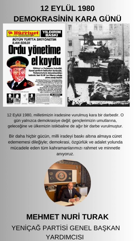 YENİÇAĞ PARTİSİ GENEL BAŞKAN YARDIMCISI MEHMET NURİ TURAK’TAN 12 EYLÜL MESAJI