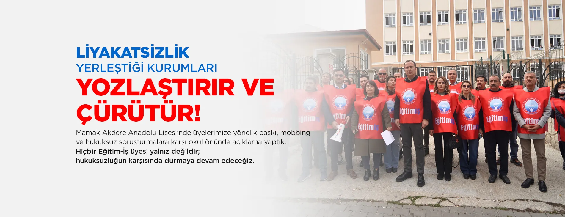 Eğitim kurumlarının sağlıklı şekilde işleyebilmesi; adalet, liyakat, saydamlık ve çalışanların onuruna saygı gösterilmesiyle mümkündür. Ancak liyakatsiz yöneticiler eliyle son dönemde bazı okullarda öğretmenlere yönelik artan baskılar, keyfi soruşturmalar, hedef göstermeye varan uygulamalar ve sürgün niteliği taşıyan görevlendirmeler, eğitim ortamındaki çalışma barışını ciddi şekilde bozmaktadır.