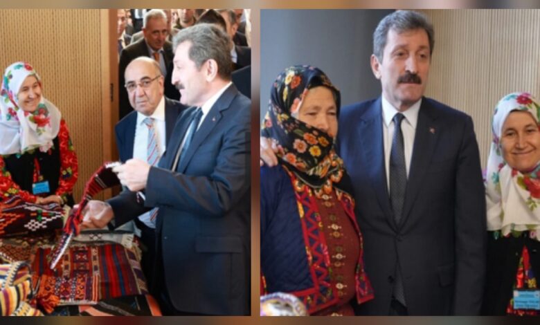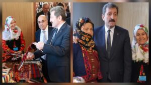 Samsun Şehit Ömer Halisdemir Salonu’nda düzenlenen Samsun Coğrafi İşaretli Ürünler Sergisi’ne de renk katan Sarıdibekli kadınlarımız hem belleme geleneği hem de Tahtaköprü Kilimi dokumacılığı hakkında Valimiz Sayın Orhan Tavlı’ya ve ziyaretçilere bilgi verdiler.